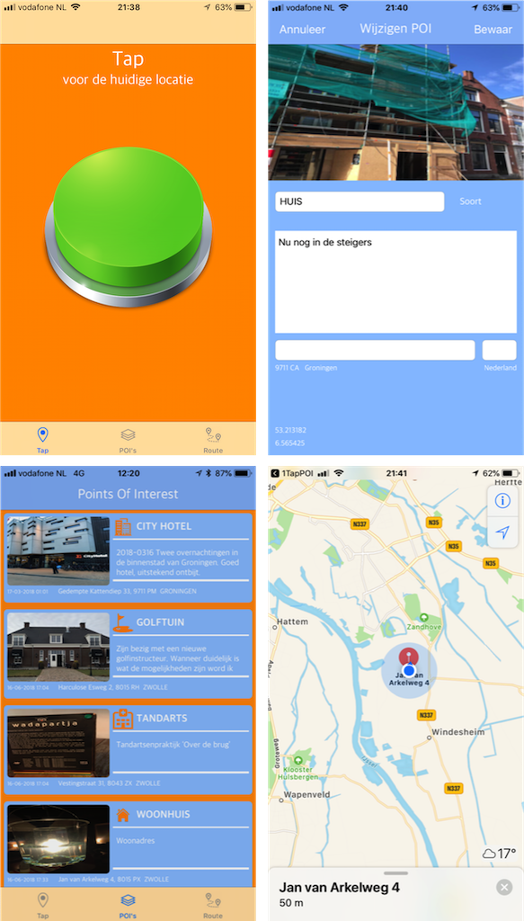 - Je zit ergens lekker te eten en wil dit restaurant aanbevelen bij je vrienden. Met 1 druk op de knop leg je de locatie van het restaurant vast. Je kan een foto toevoegen, een naam en een beschrijving. En wanneer de locatie niet nauwkeurig genoeg bepaald wordt, ook nog het adres veranderen.