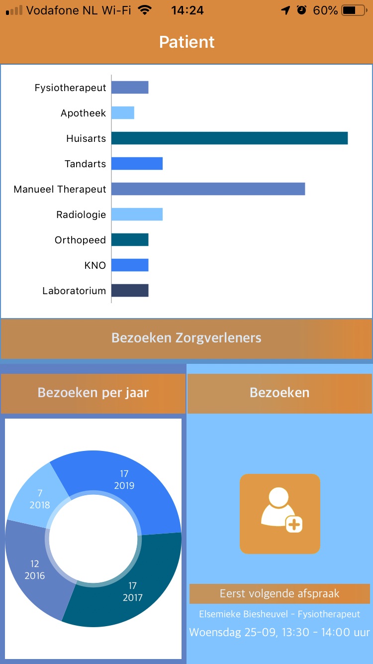 Toont het aantal afspraken per jaar bij de verschillende zorgverleners.